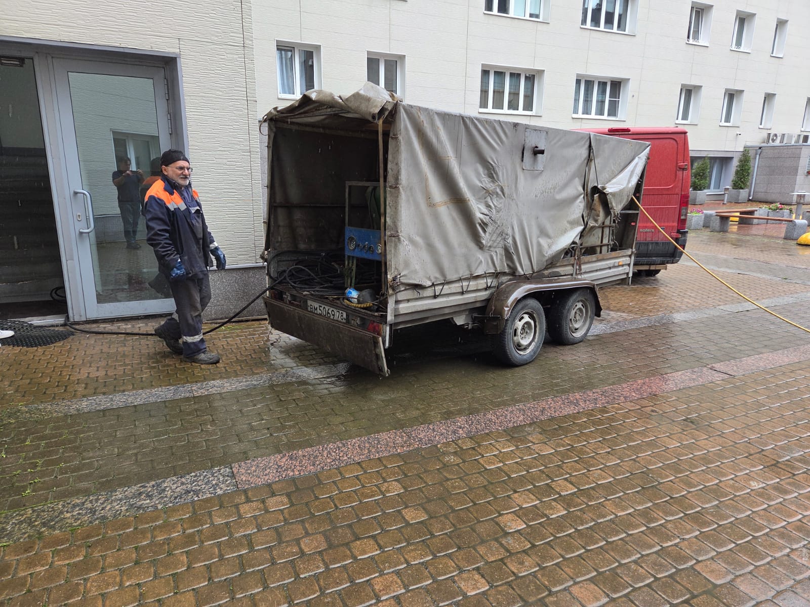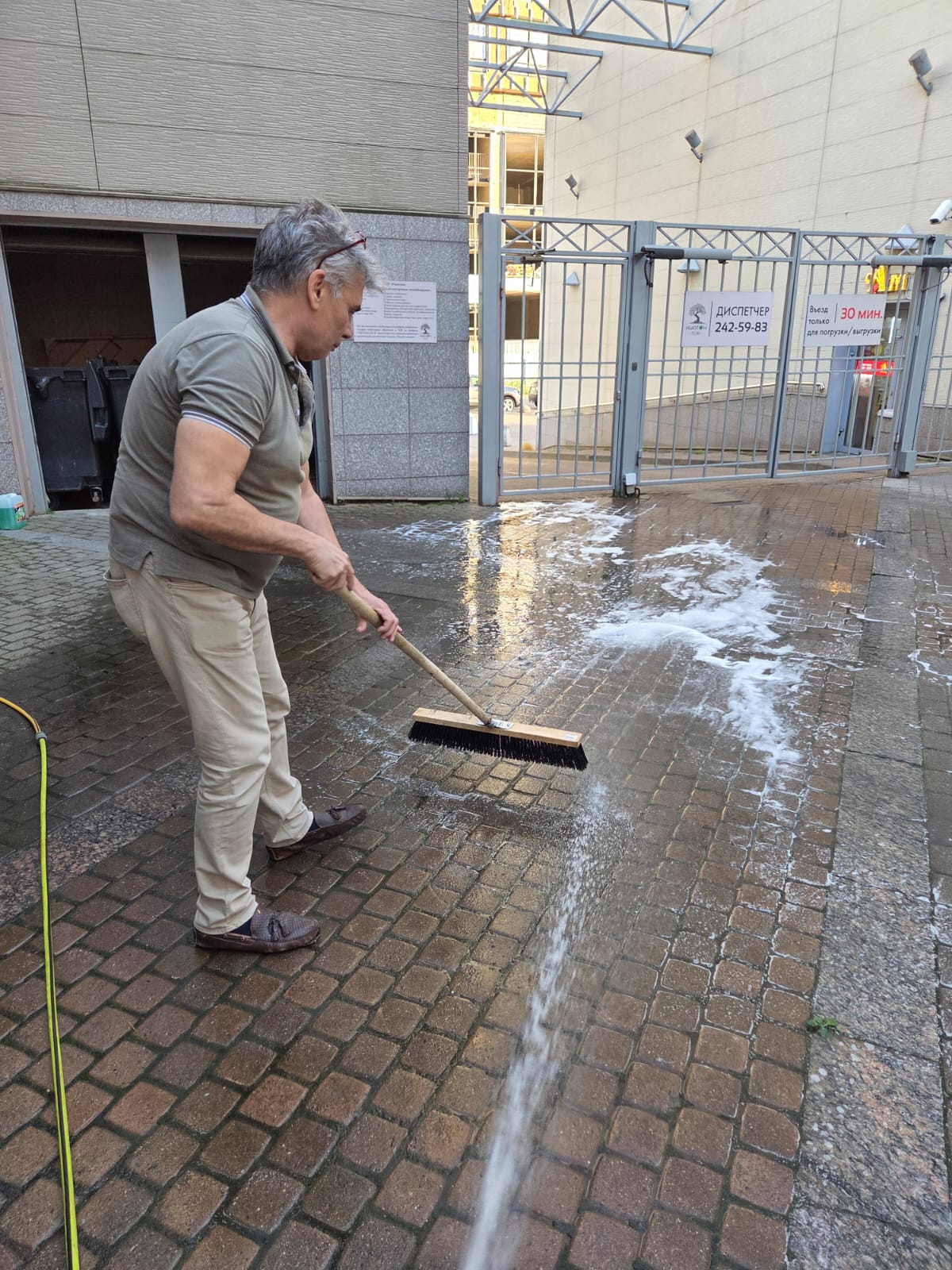 Мойка дворовой плитки после ежедневного вывоза мусора специализированной техникой