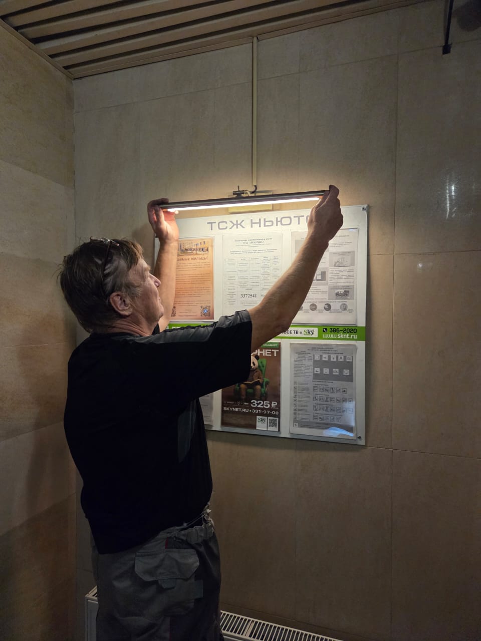 Замена дверной ручки 1ЛК. Замена светильника на инф.доске лифтовой площадки 2ЛК.