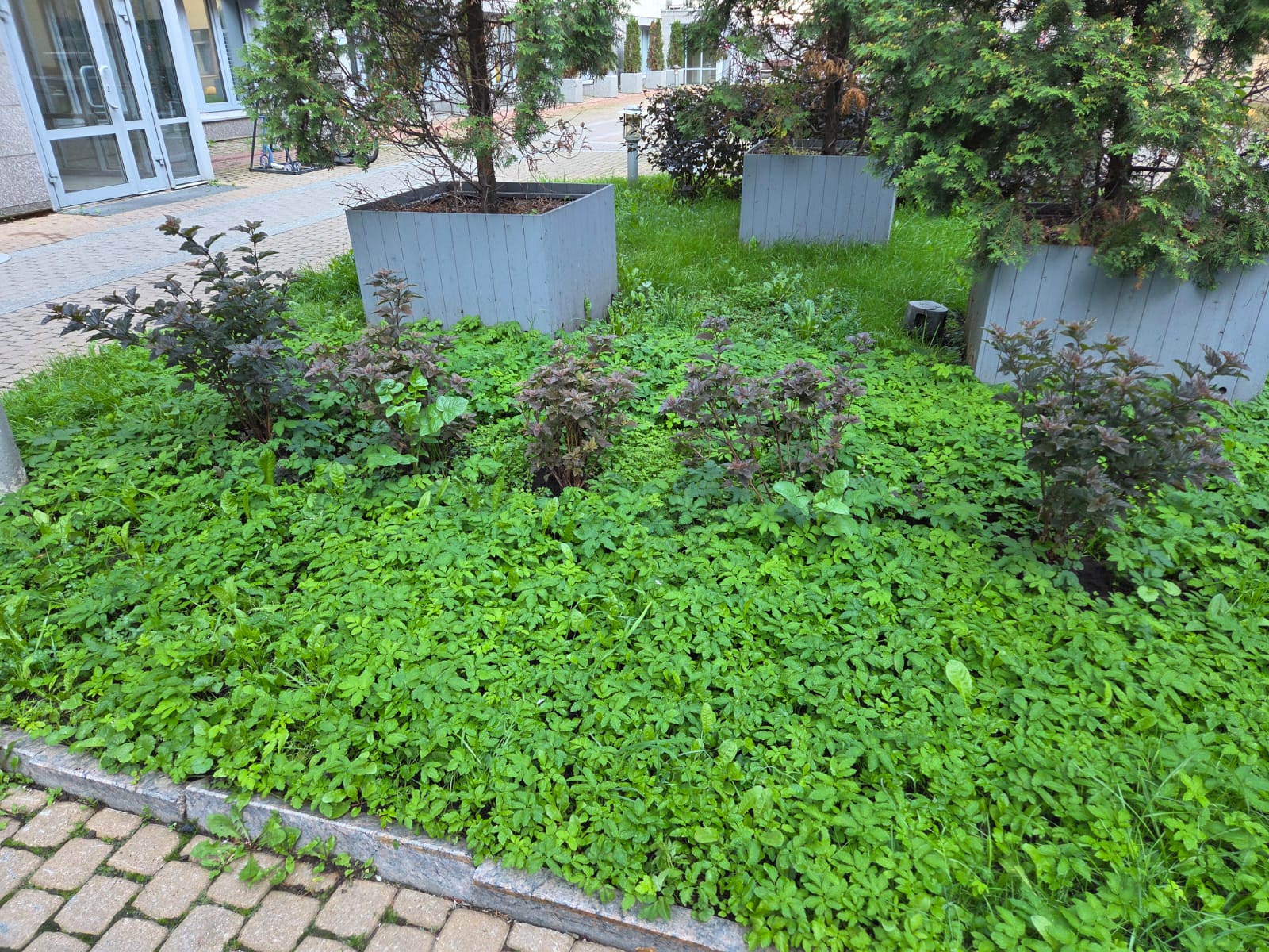 Приобретение и посадка 5и кустов Пузырь и плотник на газоне внутреннего двора жилого дома